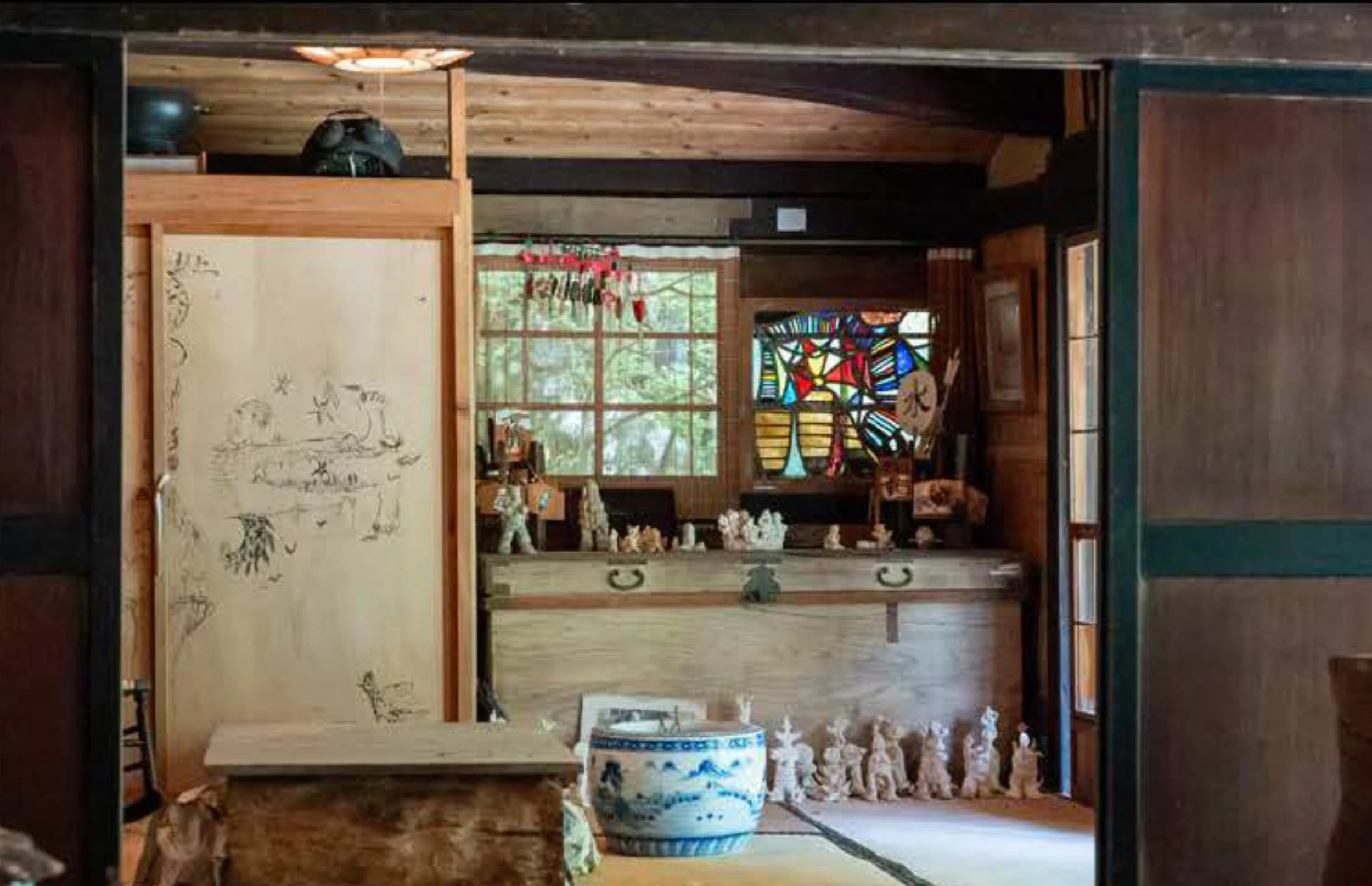 At this time, the property is not open to the general public unless you are a personal acquaintance. In that case, please use the contact form here. The future of the property and all the art is still in question. If you have contacts in Japan that might help or have suggestions on this project, please do let us know. Looking toward the future, our goals include eventually hosting art and education classes, workshops, and tours involving the arts, sustainability, and natural building with a focus on recreation and immersion in nature. We hope to foster collaborations with like-minded organizations, supporting preservation through fundraising, and carrying out thoughtful repairs to the home so that this special place may continue to inspire generations to come. Please consider a donation to help us secure and preserve the property and artwork.